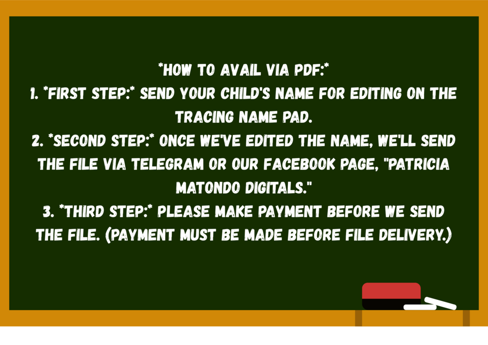 2. Second Step: Once we've edited the name, we'll send the file via Telegram or our Facebook page, "Patricia Matondo Digitals."